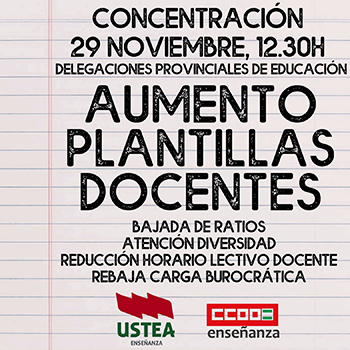 Concentración 29 noviembre. Por el aumento de plantillas docentes.